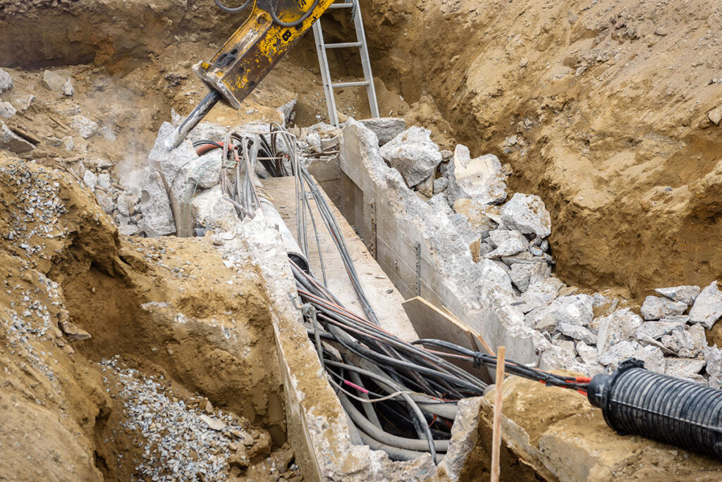 This project consisted of the demolition and reconstruction of a live, working communication vault. Working around an active communication network surrounded by underground high voltage power lines in the middle of a 5 way intersection added to the complexity of this project.