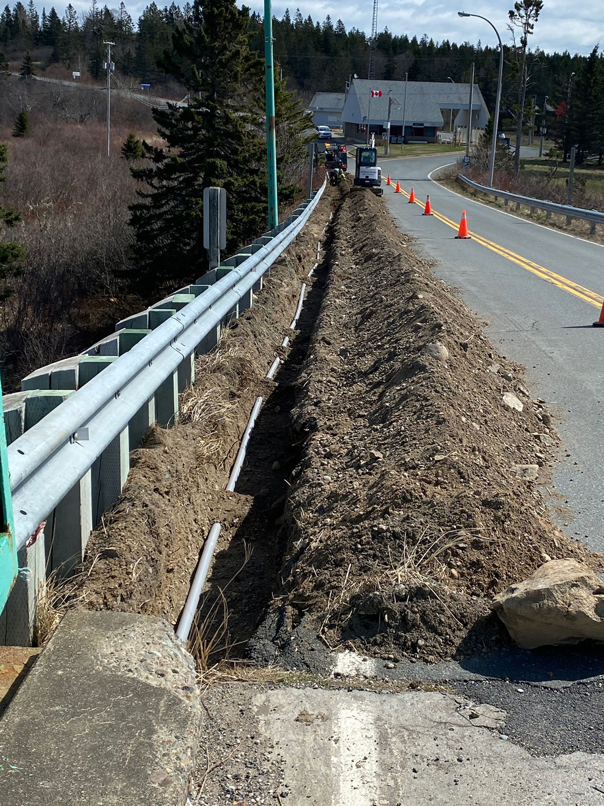 This project consisted of design and installation of a conduit system under the bridge. The conduit was for a new fibre connection to the US to bring high speed internet to the Fundy Isles. Working on this international project during a global pandemic added to its extreme complexity.