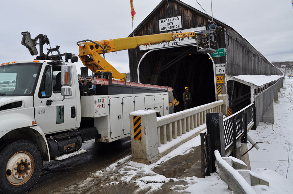 This project was part of a major New Brunswick build for Xplornet. One key element, was a river crossing using the historic Hartland Covered Bridge, the longest covered bridge in the world.